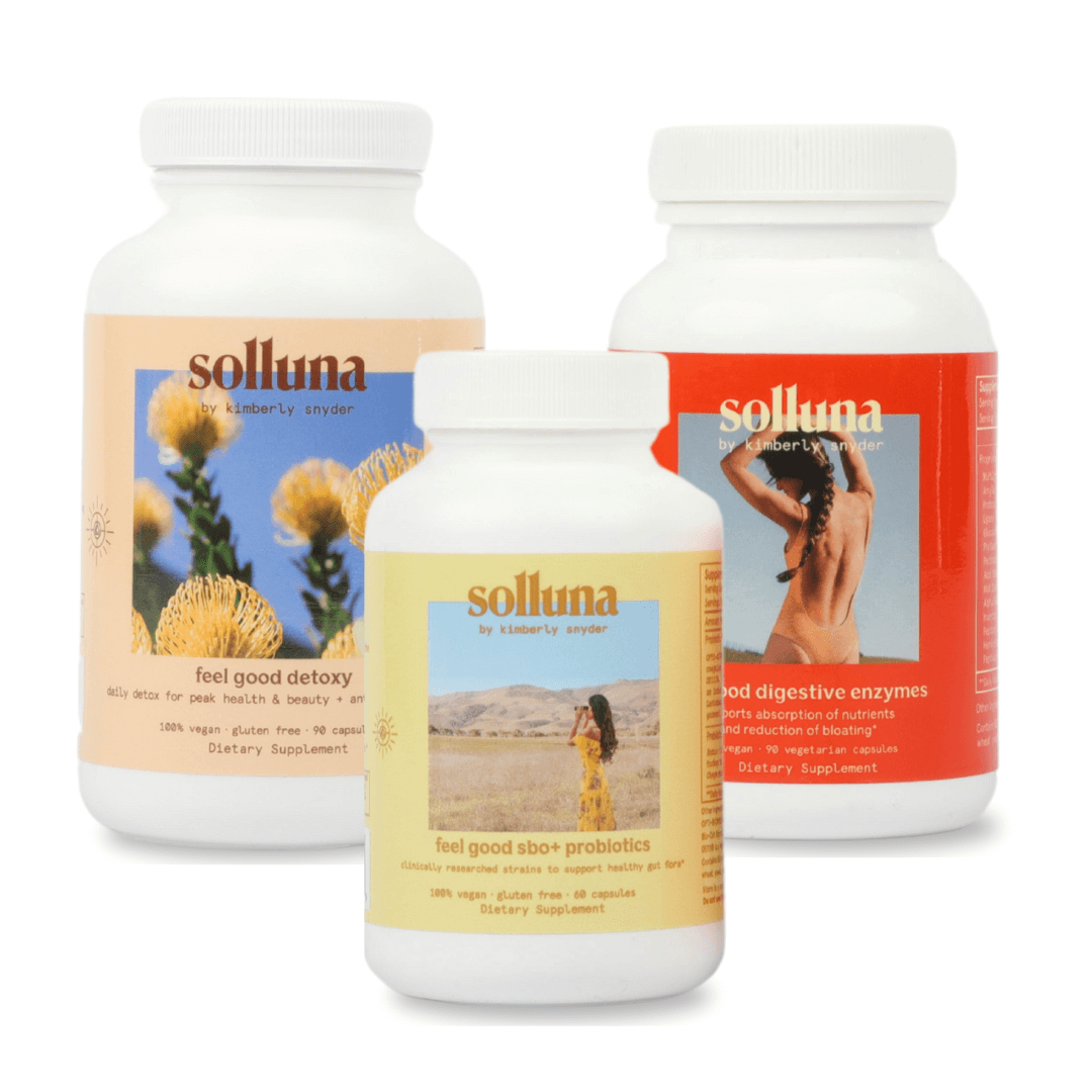 Solluna's Feel Good Starter kit is the perfect digestion trifecta to help you beat bloat, detox, and keep your gut healthy.